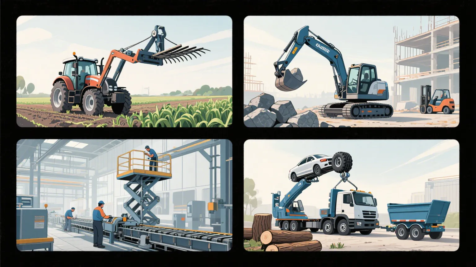 Lebih dalam pembinaan dan pengendalian bahan, ia hanya berguna. Skid steers bergantung kepada silinder angkat hidraulik tugas berat ini untuk menjalankan baldi, bergelut, dan augers-tanpa pekerjaan yang memerlukan kuasa yang konsisten. Forklift kecil juga menggunakannya, untuk mengangkat dan memiringkan tiang, jadi palet pergi tepat di mana mereka perlu. Platform kerja udara? Mekanisme gunting dalam lif yang lebih kecil bergantung pada ketepatannya untuk meningkatkan dan menurunkan dengan selamat. Malah tali pinggang penghantar tetap ketat dan cekap, terima kasih kepada tugas pengendalian silinder hidraulik ini tanpa halangan.